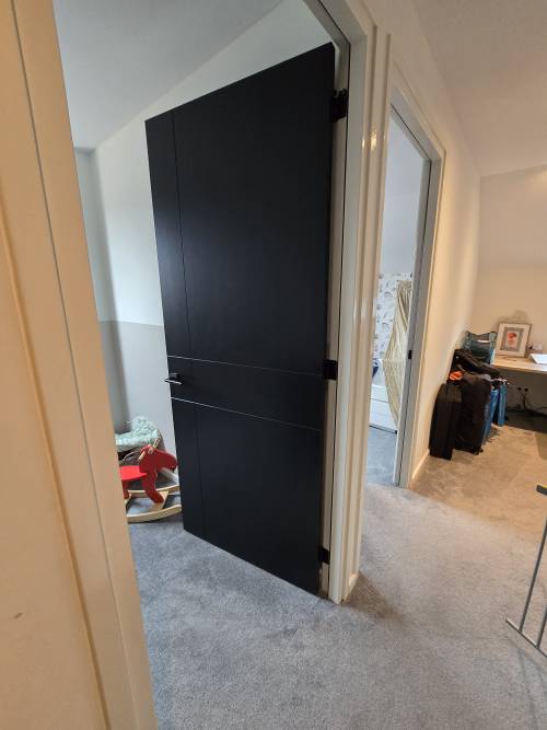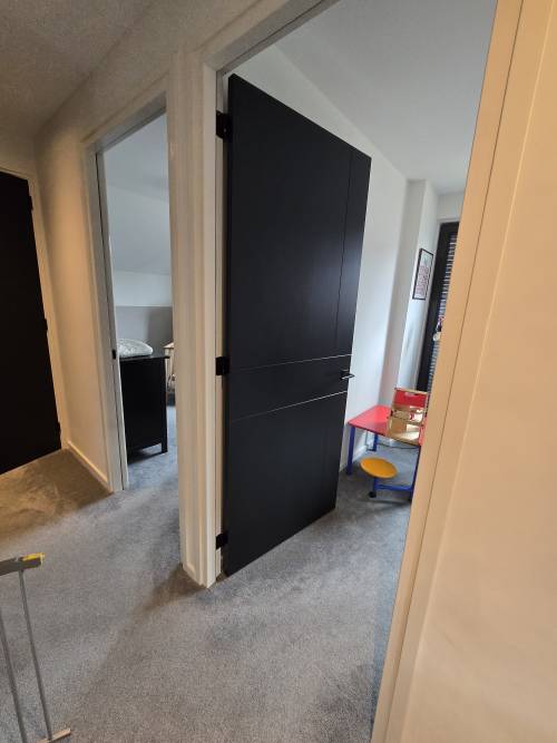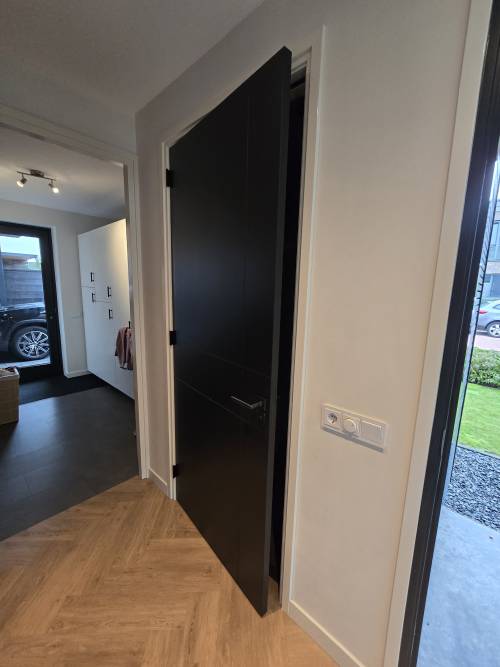 Sauswerk plands en wanden Ral 9010 en alle binnen deuren zijdeglans Ral 9005